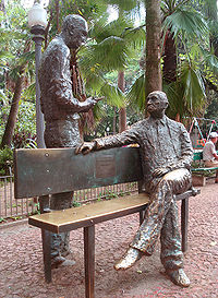 Monumento à Mario Quintana e Carlos Drumond de Andrade, na cidade de Porto Alegre, Brasil, na Praça da Alfandega