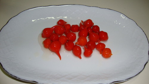 7. Retire do fogo, junte a pimenta biquinho e conserve em banho-maria, até o momento de servir.