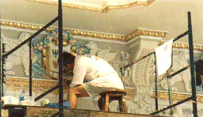 Segundo o blog Netuno Artes (http://netunoartes.blogspot.com.br/2011/11/predio-da-construtora-phoenix.html), este salão recebeu três mil folhas de ouro aplicadas nos revestimentos dos detalhes das 24 molduras com brasões que representam provincias italianas.